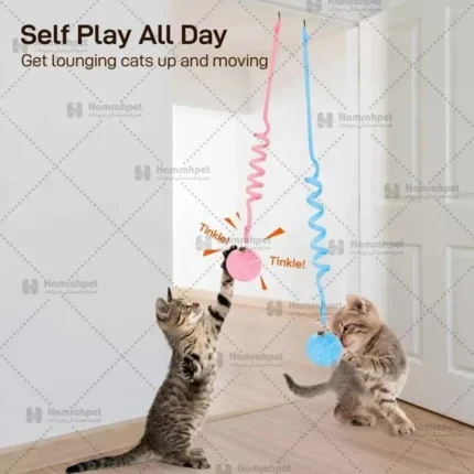 - طراحی ساده و جذاب: دارای یک فنر بلند با توپ یا پر در انتها که بهراحتی تکان میخورد و توجه گربه را جلب میکند.