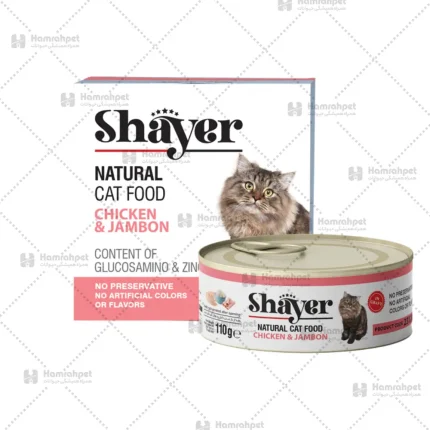 کنسرو گربه با طعم مرغ و ژامبون شایر Shayer Natural With Chicken & Jambon وزن 110 گرم