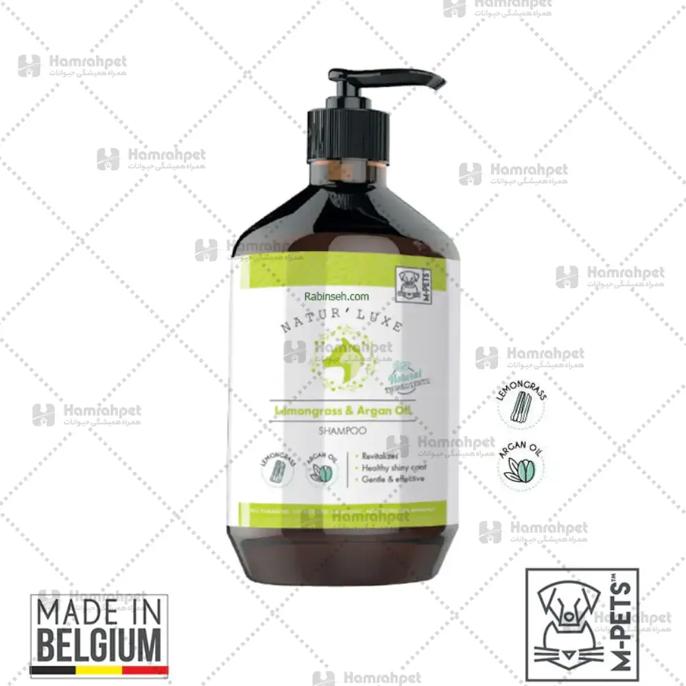 شامپو گیاهی آبرسان برگ لیمو و روغن آرگان سگ و گربه ام پتز بلژیک 500ml