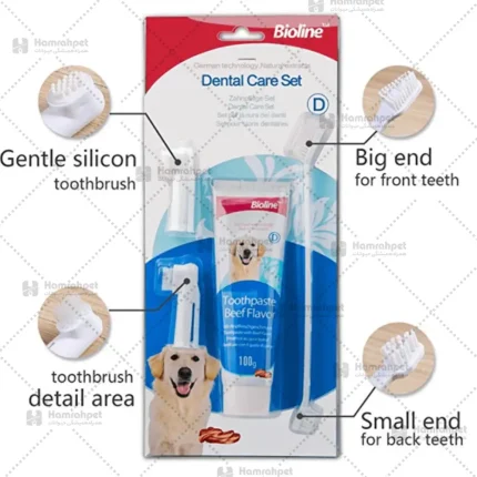 ست مسواک و خمیردندان مخصوص سگ بایولاین با طعم گوشت حجم 100 گرم