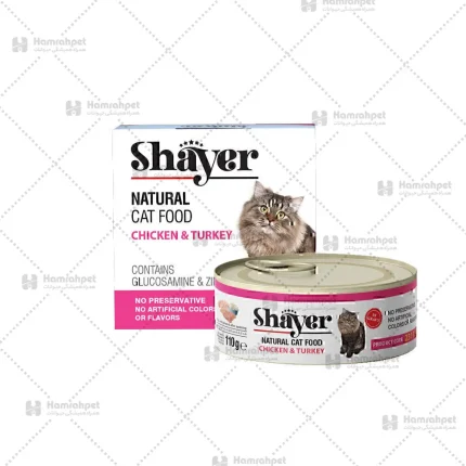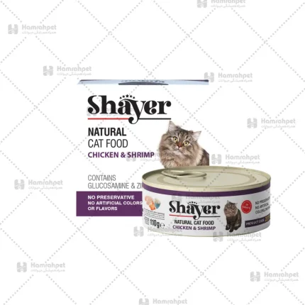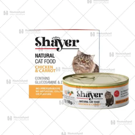 کنسرو غذای گربه با طعم مرغ و هویج شایر Shayer Natural With Chicken & Carrot در سس گوشت وزن 110 گرم