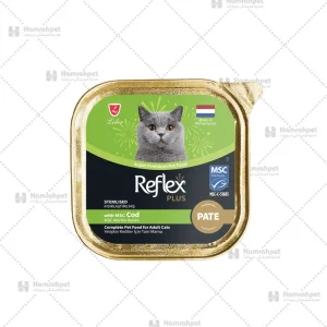 ووم گربه بالغ برند رفلکس پلاس طعم شاه ماهی و کاد